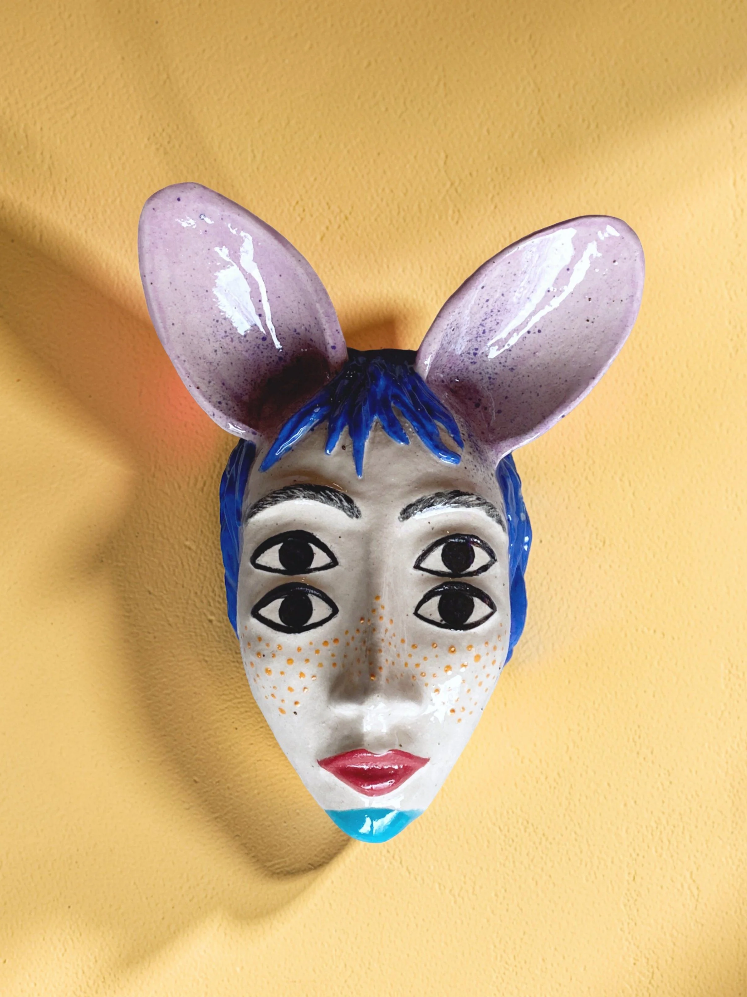 Unika keramisk vægskulptur i serien Diplopia. Undersøger samtidige blikke og ændret perception gennem form, begitning og glasur. Egenstøj handler om de forstyrrelser, der opstår i mødet mellem sansning og bevidsthed. Om det, vi selv bringer ind i blikket, og om hvordan indre signaler kan farve det, vi ser.